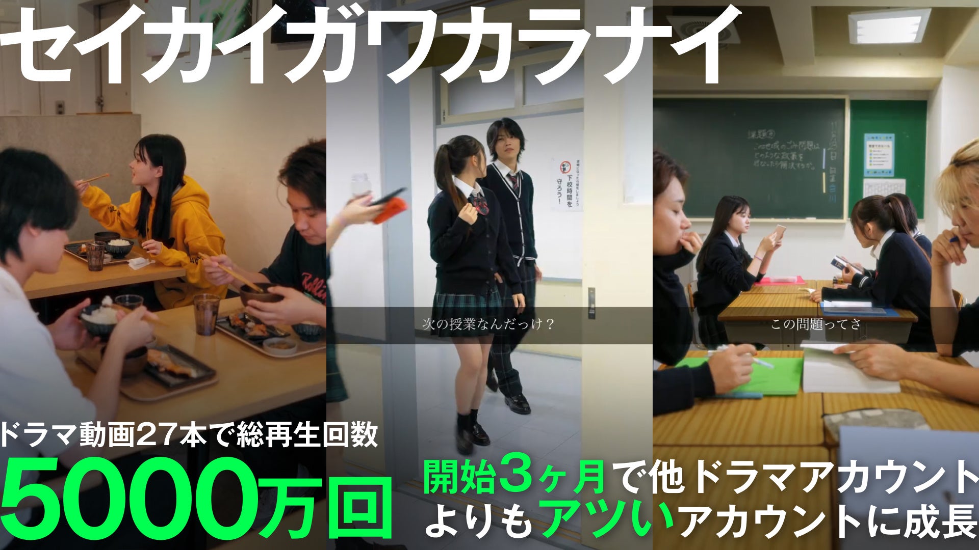 2024年7月から運用開始した自社IPプロジェクト「セイカイガワカラナイ」は、開始3カ月でTikTok総再生回数は5,000万回、制作本数25本を突破しました。